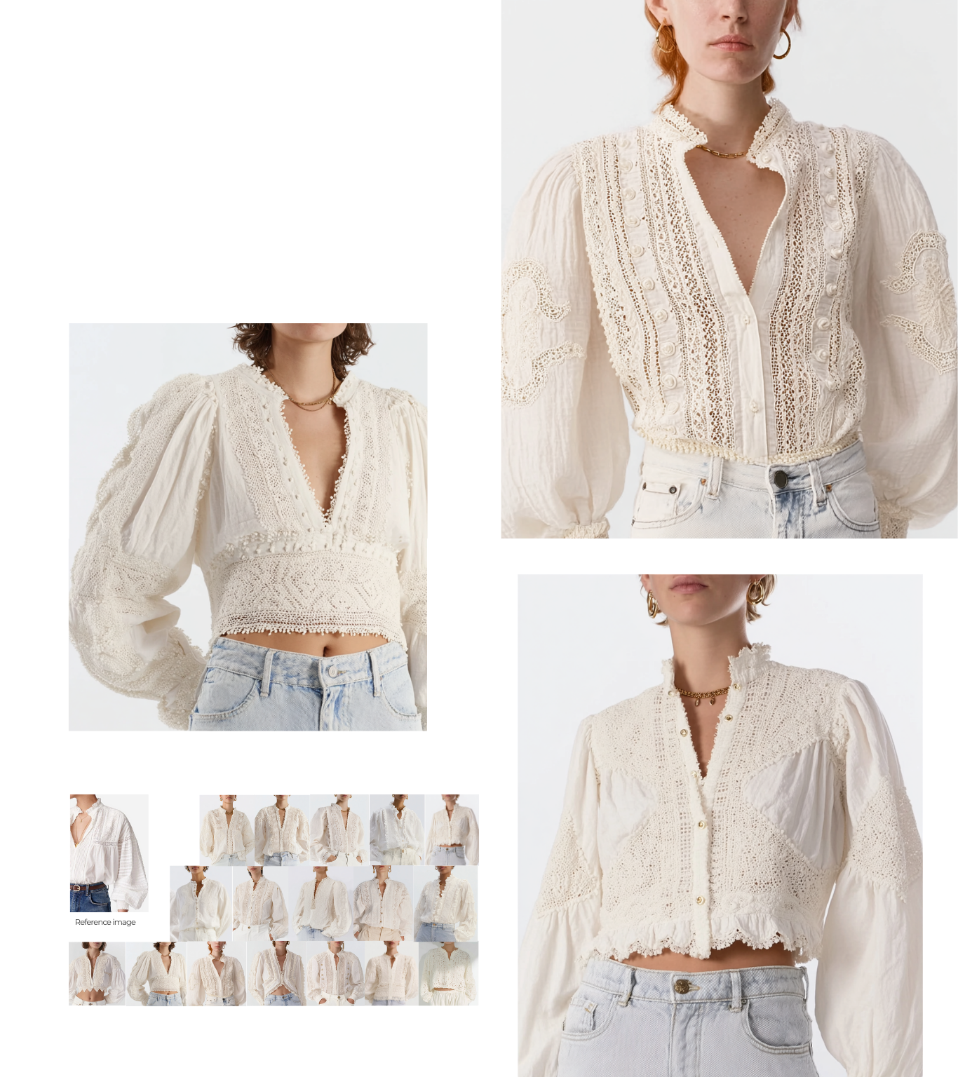 Objective: Design feminine off-white cotton tops aligned with the Handcraft-Vintage trend for a contemporary consumer. Do not use pleats.
