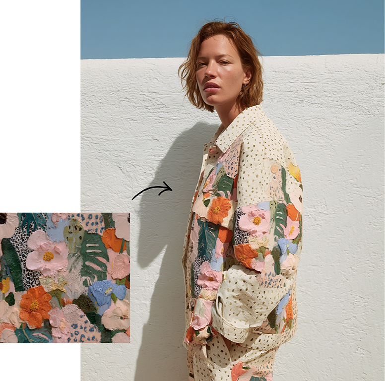 Briefing: Develop a statement floral print and explore its application across outerwear designs, balancing visual impact and commercial viability.